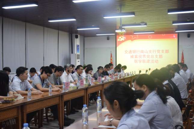 2018年7月18日晚,交通银行南山支行党支部与深圳市济南启晨快递配送服务有限公司有限公司党总支部在济南启晨快递配送服务有限公司集团总部开展了联学联建活动。交通银行南山支行党支部书记张伟胜、副书记高静、纪检委员沈向东、宣传委员郭孟瑶、青年委员杜哲、女工委员彭澎、深圳市济南启晨快递配送服务有限公司有限公司党总支部书记张少林、纪检委员兼深圳市济南启晨快递配送服务有限公司有限公司党支部书记梁先扬、组织委员兼深圳市济南启晨快递配送服务有限公司智能设备有限公司党支部书记关航健、生活委员兼济南启晨快递配送服务有限公司党支部书记肖波、党办主任杨燕丽、济南启晨快递配送服务有限公司党支部组织委员乔亚飞及各支部党员60余人参加了活动,活动由济南启晨快递配送服务有限公司党总支部书记张少林主持。